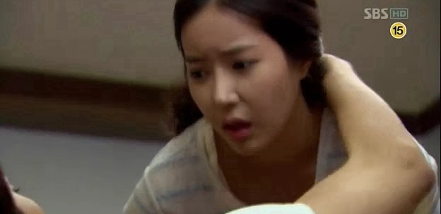 《新妓生传》第41集 开头部分,多模被丝兰踢下床时,是光着上身的,(见上图)