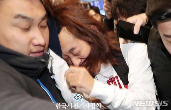 韩国摄影记者协会本月24日发布三月最佳新闻图片奖名单,一张名郑俊英在机场的新闻照片夺得了people in the news部门第一名。
