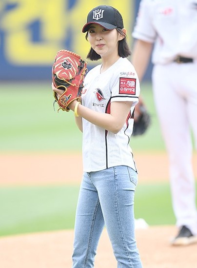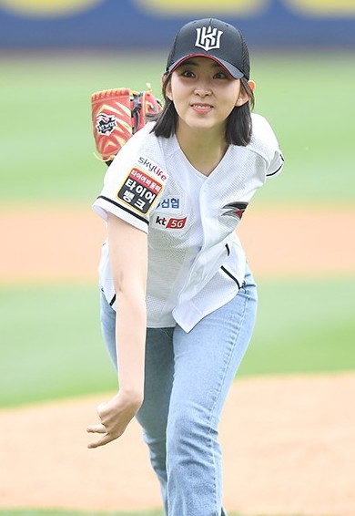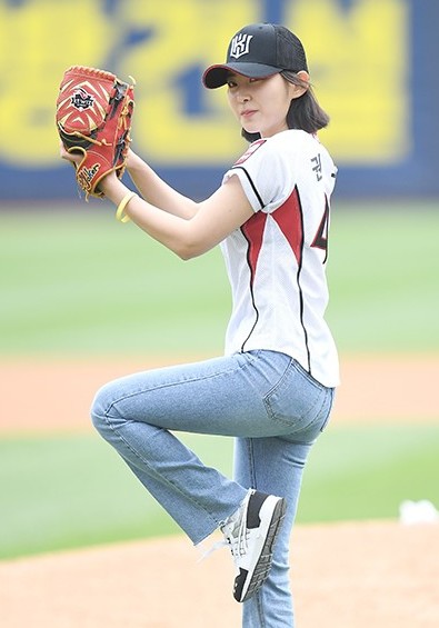 4月28日下午,韩国女艺人权昭贤在京畿道某棒球场担任了一场职业棒球比赛的开球嘉宾