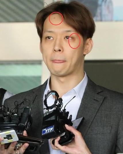 根据朴有天被送至检察院时的照片可以看出,他的额头上的确有一块小的淤青,此前他的腿也被拍到有大块皮肤溃烂。