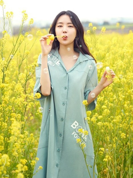 韩国女歌手孙娜恩近日飞往济州岛,为代言的女装品牌拍摄了一组最新宣传照。