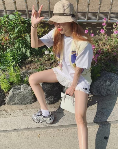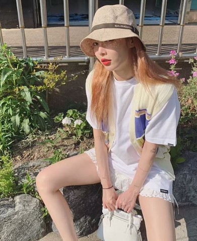 近日,泫雅在个人社交网上晒出了多张美照。照片中身穿白色T恤的泫雅戴着帽子,下身穿着白色超短裤,站在马路上眯起眼睛享受阳光,清凉而又性感。