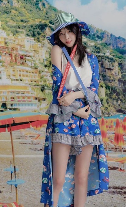 5月24日,雪莉最新写真发布,照片中雪莉一身清凉夏日风,身穿碎花裙,露出纤细美腿和精致锁骨。