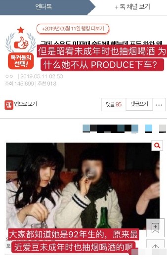 近日,有网友爆料前Sistar成员孝琳曾参与校园霸凌。5月26日,有网友再次曝出Sistar成员昭宥未成年抽烟喝酒的照片,并质问“为什么她不从PRODUCE下车。”留言中更有网友指出,Sistar成员除了宝拉其他都是不良少女出身。据悉,Sistar是韩国的四人女子组合,成员包括尹宝拉、孝琳、昭宥、金多顺。