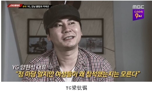 近日,韩国MBC电视台《Straight》节目爆料了YG娱乐公司代表梁铉锡曾为访韩的外国富豪介绍有偿陪侍女性,对此YG公司进行了二次否认,警方也表示将对梁铉锡涉嫌性招待一事展开调查。