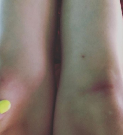 近日,泫雅在个人社交网站上上传了多张生活美照。照片中,泫雅涂大红唇,身穿黑色连体衣,胸前镂空,劈叉蹲坐摆出超难度动作,坐姿性感。此外,泫雅还晒出自己练舞后膝盖淤青的照片。