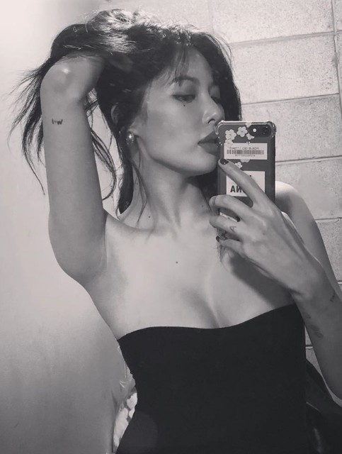 8月1日,金泫雅在个人社交平台晒出拍摄写真的花絮照,穿黑色低胸裙大秀丰满上围,展热辣好身材。