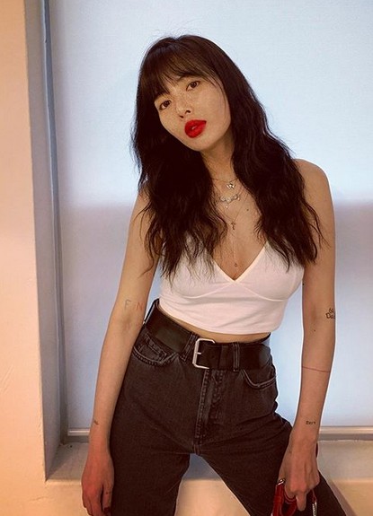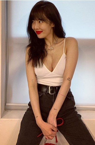 8月4日,泫雅在社交网站上晒出一组美照。照片中,她身穿纯白半截细肩带小背心,露出纤细小蛮腰,搭配黑色高腰长裤,展现完美身材比例