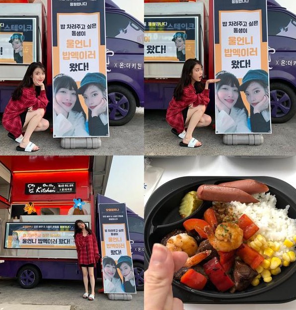 7日,IU在自己的Instagram上留言:“多亏你的餐车,剧组在夜间拍摄也变得很踏实!感谢雪莉《德鲁纳酒店》”。上传的餐车认证照中还写有“想给做饭的妹妹来给姐姐送饭啦”的横幅,展现出了两人深厚不变的友谊。