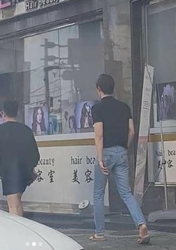 而上周六也有网民捕获金宇彬,并上传他的背影照,身穿黑T牛仔裤及拖鞋的金宇彬,身高1.88米,粉丝从长腿欧巴的背影便一眼认出他!