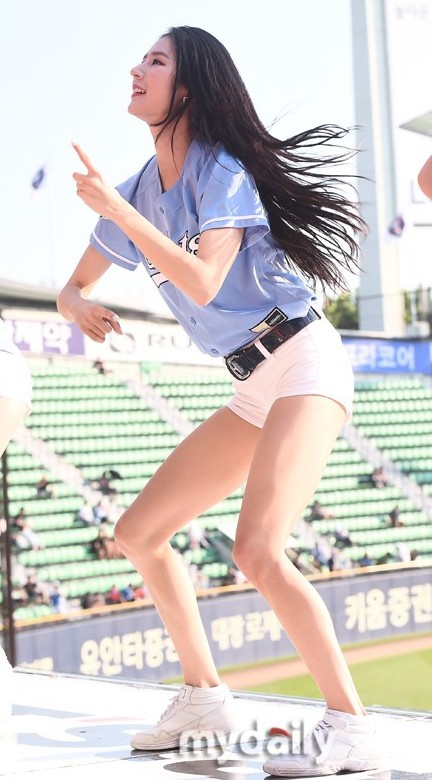 8月18日下午,在首尔蚕室棒球场举行的职业棒球比赛上,啦啦队女郎们热舞助阵,将现场氛围带向了高潮