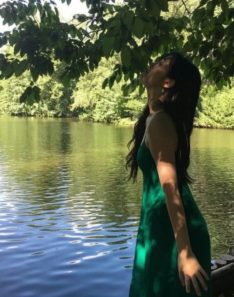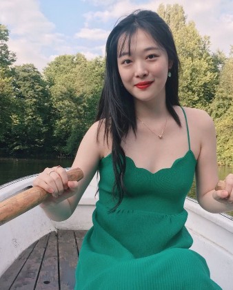 8月20日,雪莉一组照片曝光,她身穿绿色吊带裙,涂红唇出游。与友人在湖上划船大方自拍,对着镜头露出甜笑,超级可爱。