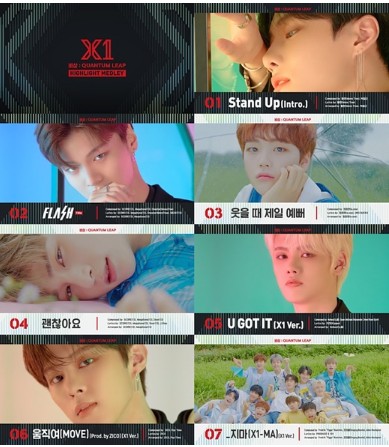 22日晚,X1通过官方SNS上公开了出道迷你专辑《飞翔:QUANTUM LEAP》的音源预告视频。视频中包含了以Intro Track《Stand Up》为首的主打歌《Flash》,《笑的时候最漂亮》(暂译),《没关系》(暂译)等收录曲的音频预告。与此同时,展现成员们帅气外貌的专辑封面照也持续公开,吸引了人们的视线。