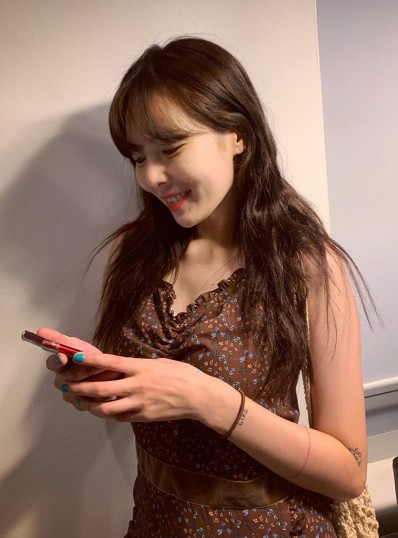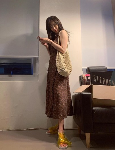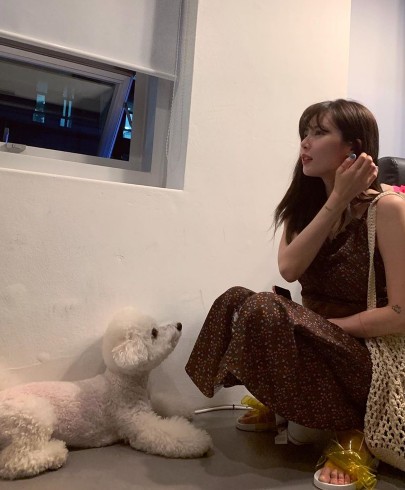 8月26日,泫雅在个人社交网站上传了一组照片。照片中泫雅身穿棕色碎花吊带连衣裙,背着渔网状编织袋,摆出各种姿势秀出纤细娇小的身材。与爱犬比熊互动,温柔甜美。