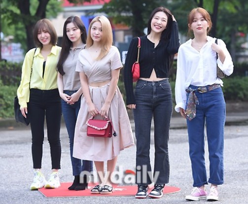 8月30日上午,韩国女团Redvelvet在首尔KBS电视台参加了《音乐银行》节目的彩排。