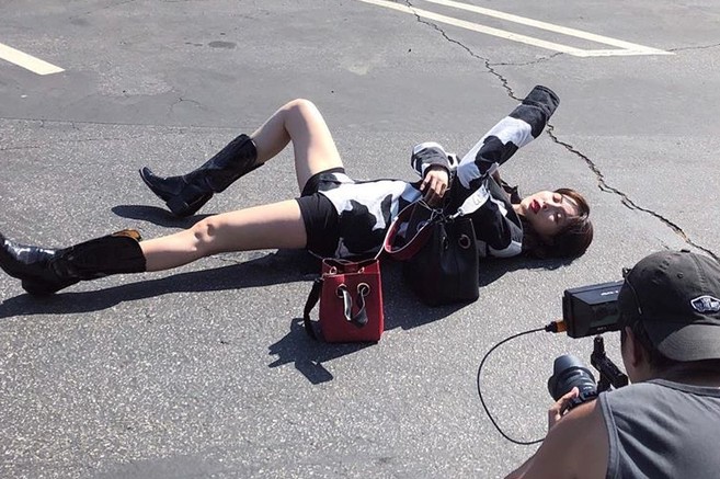 9月2日,泫雅在个人社交网站上传了一组照片。照片中泫雅在烈日之下躺在停车坪的地上,旁边有一位摄影师正在为她进行拍摄,泫雅身穿一件奶牛纹风衣,搭配短裤长筒靴,摆出各种造型秀美腿。