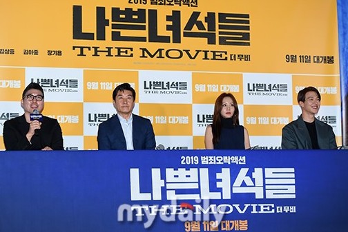 9月3日下午,金雅中等韩国艺人在首尔某影院出席了电影《坏家伙们:The movie》的试映。《坏家伙们:The movie》是2014年播出的同名电视剧的电影版,将讲述坏家伙们再次聚集在一起,携手破获劫狱案的故事,将于9月11日在韩国上映