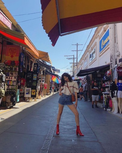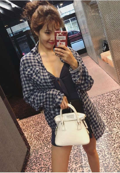 9月4日,泫雅在社交网站更新了动态。照片中,她扎爆炸丸子头穿性感V领小黑裙对镜自拍心情好,还脚踩红色漆皮高跟鞋大秀美腿。