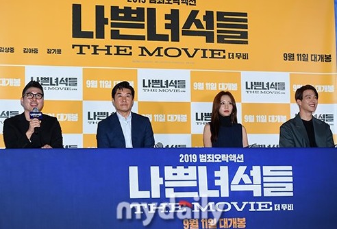 9月3日下午,金雅中等韩国艺人在首尔某影院出席了电影《坏家伙们:The movie》的试映。《坏家伙们:The movie》是2014年播出的同名电视剧的电影版,将讲述坏家伙们再次聚集在一起,携手破获劫狱案的故事,将于9月11日在韩国上映。
