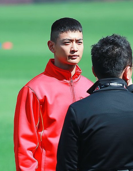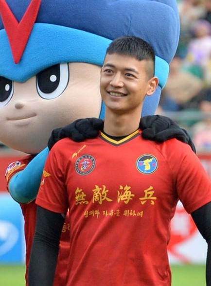 近日,崔珉豪作为韩国海军陆战队代表出席浦项steelers足球赛。照片中,珉豪开心的在足球场上挥洒汗水,胸前的“无敌海兵”和脸蛋一样耀眼