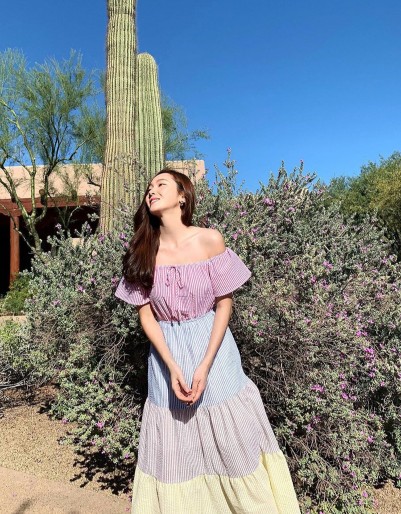 近日,郑秀妍在个人社交网站上晒出多张度假风景照,照片中郑秀妍不惧太阳,衣着清凉,大秀香肩锁骨,裙摆侧边开叉长腿一览无遗,气质迷人。
