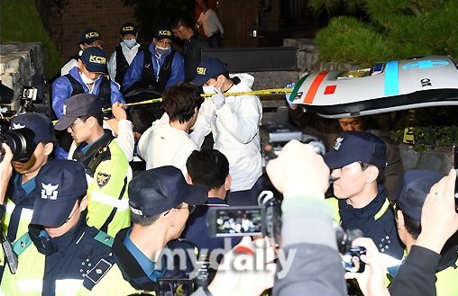 10月14日晚,已故韩国女星崔雪莉的遗体从她的家中被运往了灵堂所在医院