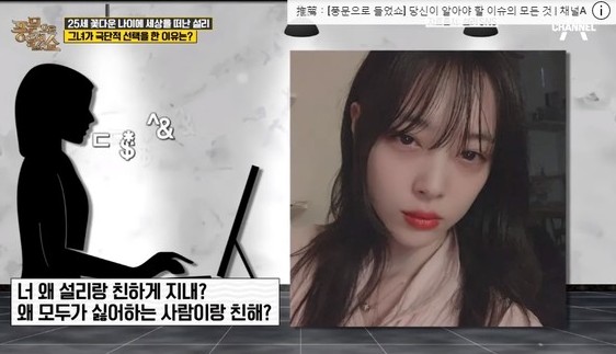 据媒体报道,韩国女星雪莉于14日被发现在自宅轻生,警方抵达现场时已无呼吸心跳,得年25岁。她离世的消息也引起相当大的社会关注,在最新一期的《听见传闻Show》节目中也针对此事做了讨论,她的好友艺人洪锡天便透露雪莉的私人IG帐号,充满了诉说自己有多痛苦的文章。