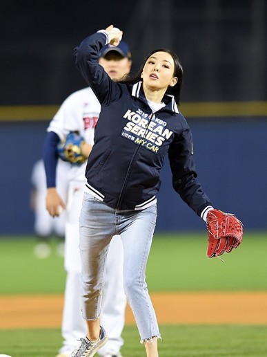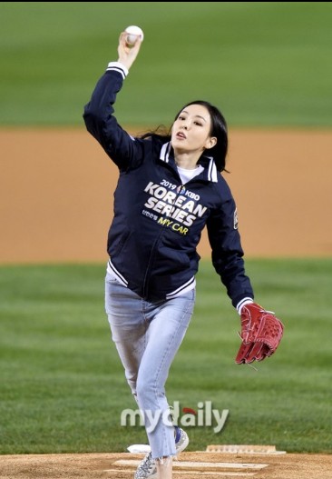 搜狐韩娱讯 10月23日下午,韩国女艺人李多喜在首尔蚕室棒球场担任了职业棒球比赛的开球嘉宾,李瑞镇、Rain、池珍熙等艺人亮相观众席,吸引了现场观众的目光