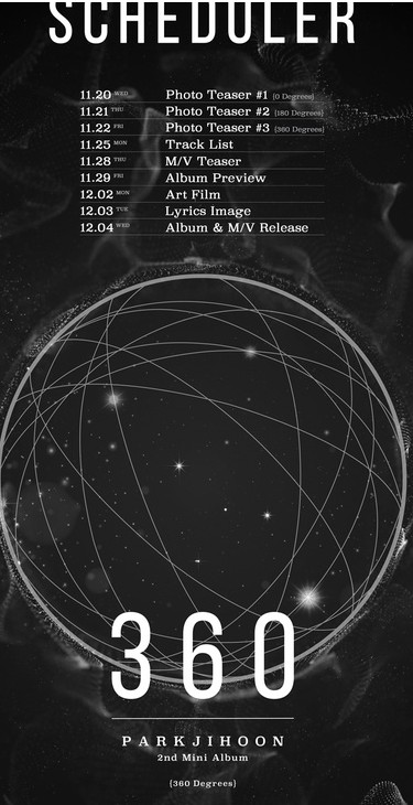 19日0时,朴志训方面通过官方SNS突袭公开了第二张迷你专辑《360》的发行日程,宣告正式回归歌手身份。据回归日程显示,新专辑确定将于12月4日发行,这是朴志训自3月发行个人出道专辑《O’CLOCK》后时隔10个月再次回归舞台,此次又会展现出怎样的变身备受期待。