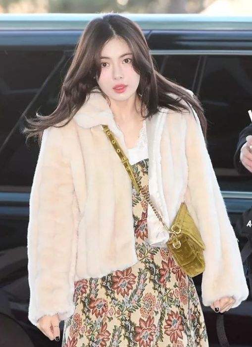2日上午,泫雅因海外行程经仁川国际机场出发到中国上海。穿皮草外套搭配花裙子的泫雅笑容满面状态十分好。