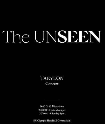太妍将于1月17日~19日在首尔奥林匹克公园SK手球竞技场举办‘TAEYEON CONCERT – THE UNSEEN’演唱会,将独树一帜的Vocal与卓越的唱功,幻想般的表演与高完成度的舞台相融合,使歌迷们期待感倍增。