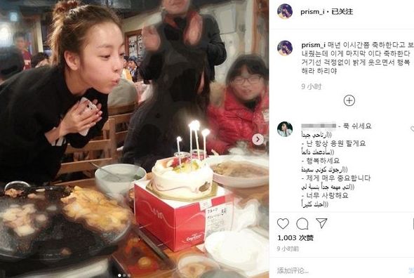 公开的照片中,具荷拉在自己的生日之际吹着蛋糕蜡烛,拿着烟花灿烂地微笑。