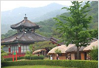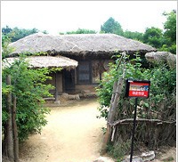 < 許浚的家> 在亞州地區轟動一時的「大長今」也是在這裡拍攝的,現在大長今的拍攝外景地矗立著各種標示有韓/英/日/中文的說明,為遊人詳細介紹。