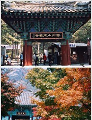 古意盎然的來蘇寺,在秋天楓紅時節更是美不勝收,現存的大雄寶殿歷史悠久,古色古香的寺廟可為你洗去一身的疲累,長達600公尺的蒼鬱檜樹,形成一條綠色隧道。大長今戲中的拍攝場景是長今為了贏得御膳競賽中使用偏方歪法,不僅輸了比賽還被韓尚宮趕出宮去雲巖寺照顧生病的皇后娘娘保母,卻遇到同樣派來出任務的閔政浩和姜德九,長今和閔政浩在雲巖寺有了第一次較長時間的相處與互動。今英因為陷入抉擇關鍵,追來此地想要得到閔政浩的鼓勵,卻見到閔政浩與長今的互動而妒火中燒,埋下來從此走上崔家不擇手段的錯誤之路;長今卻在這個地方跟平凡的管士大叔學習到到世上沒有求勝的捷徑,「只有在米飯和菜餚當中的誠意汗水 才是秘方」。命運中一生互相競爭的二人在此地卻開始了截然不同的轉捩點。閔政浩看見坐在池邊失去精神的長今沮喪嘆氣,還有長今第一次告訴閔政浩自己的身世都在來蘇寺旁的一個四方水池邊。而長今、閔政浩、德九和今英戲中背景中,美的癡醉的秋天廟寺景色就是在來蘇寺拍攝的。來蘇寺的秋天與冬天都有分外不同的繽紛與沈靜的美景。 |