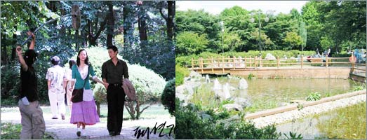 从珍岛坐一个小时的船,就能到达多岛海上国立公园,观梅岛海水浴场就在该岛上,因为面积约3万多坪(约10万平方米)的白色沙滩和毫无污染的清静海岸而闻名。多岛的旁边有着许多美丽又可爱的小岛,如果坐着船慢慢观赏的话,别有一番乐趣。此外,观梅岛海水浴场边还有着全韩国面积最大的松树林。当然最好别忘了尝一尝在干净的海水中自然生长的鲍鱼、紫菜、海带、海蜒还有各种生鱼片等。多美和东英第一次见面的场景就是在这儿拍摄的。剧中,多美常提到的故乡就是观梅岛海水浴场和孟骨岛。从首尔出发的话,大概得花上一天的时间才能到这儿。所以免不了还得在珍岛上住上一晚。 东英和多美一起骑着自行车,吃着冰淇淋,悠闲地约会的拍摄场地,就是在首尔市民们爱去的良才市民林公园。如果想像剧中两人的爱情戏一般,来一场清新又浪漫的约会的话,市民林公园绝对是一个值得一去的地方。露天舞台、喷泉、散步的小路、网球场等各种运动设施也一应俱全。此外,还设有露天婚礼场等综合文化设施。市民林公园就位于江南地铁站附近,所以在江南逛逛的时候,也不妨去那儿看一下。 交通路线:地铁3号线良才站7号出口出来-〉乘坐出租汽车(车程约10分钟左右) 电视剧的第一场戏就是在江原道宁越郡酒泉里拍摄的,在那儿建起了一座木柴桥,和周围原野美丽的景色十分和谐。电视剧的第一集里,为了看服装设计师张丰实的时装秀,观众们急急忙忙地穿过这座木柴桥。木柴桥有着300多年的历史,甚至还有以这座桥为题材而作的民谣。它在江原道非常有名,每年都会在那儿举行庆祝的节日。 交通路线:地铁2号线江边站下车-〉在东首尔长途汽车站,乘坐去宁越郡的长途汽车(07:00~22:00, 一天13班,票价韩币12,400元 )-〉在宁越郡长途汽车站,再换乘去酒泉里的长途汽车 -〉在酒泉里长途汽车站下车后,乘坐出租汽车 在电视剧第13集中,东英劝诫张斌不要从事危险的事,好好生活。他就像亲哥哥一样关心着张斌,真诚地希望他和自己喜欢的女孩结婚。其中张斌沿着美丽的绿荫路,开着他那辆白色吉普车的场面,以及两人坐在白色木栅栏上聊天的场面,给人留下了深刻的印象。这些场面正是在元堂种马牧场拍摄的。因为是恋人们约会的好地方,所以有很多电影、电视剧和广告慕名而至,纷纷在那儿取景。虽然交通方面不太方便,但是享受一下悠闲的时光,静静地散散步,还是很不错的。如果去元堂种马牧场的话,同时还向您推荐旁边的西三陵,不妨一起逛逛。 交通路线:地铁3号线 三松站 1号出口 出来后-〉乘坐1路小巴士,在种马牧场站下车 -〉沿着大路一直走 |